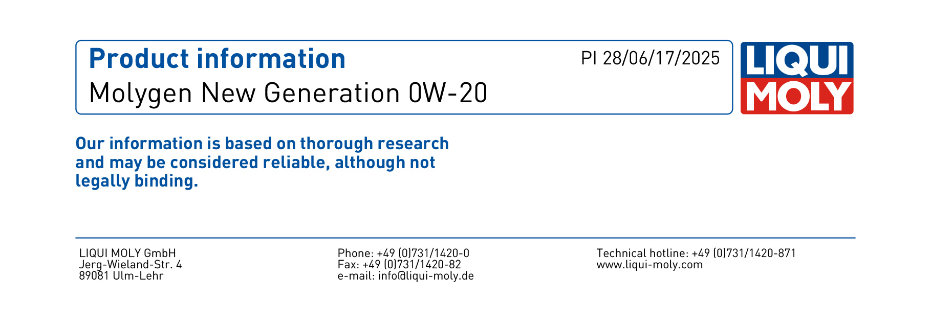 LIQUI MOLY Molygen New Generation 0W-20 機油/潤滑油/偈油【綠魔系列】【原裝行貨】