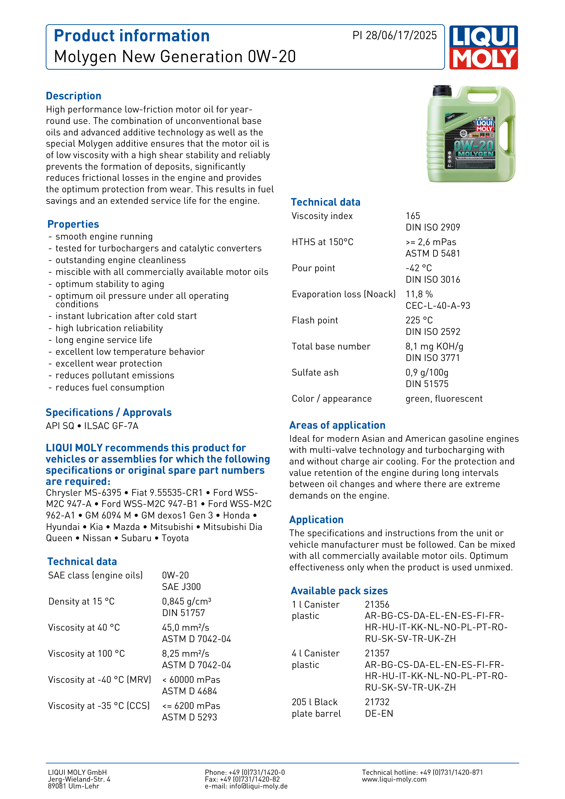 | 適用領域: 特別適用於現代亞洲和美國汽油引擎,適用於多氣門技術和有無增壓空氣冷卻的渦輪增壓器。在長時間的換油間隔期間,對引擎的保護和價值保留尤為重要,並且對引擎的要求極高。 |