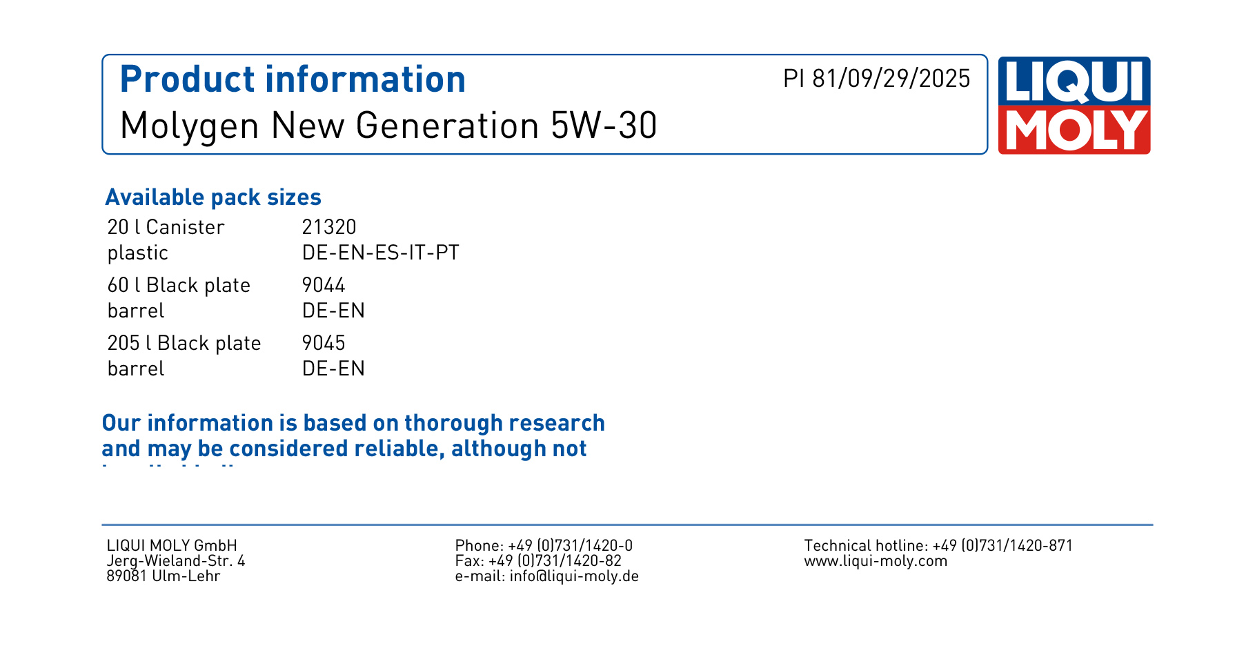 LIQUI MOLY Molygen New Generation 5W-30 機油/潤滑油/偈油【綠魔系列】【原裝行貨】