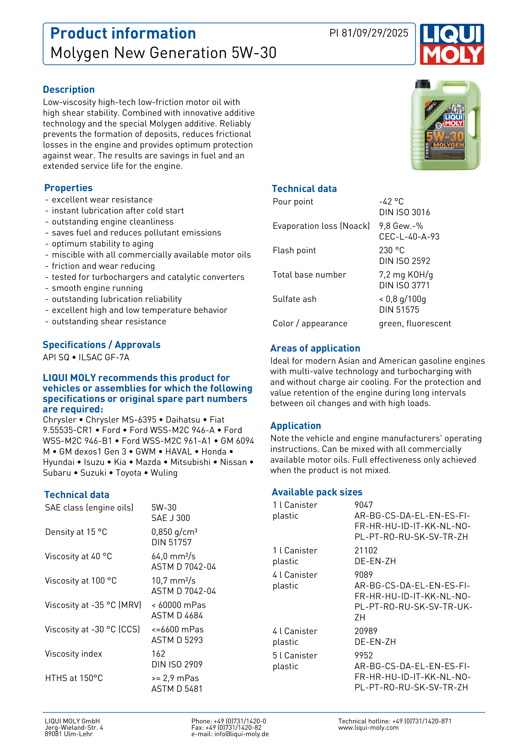 LIQUI MOLY 建議此產品適用於符合以下規格或原裝備件號碼的車輛或組件: