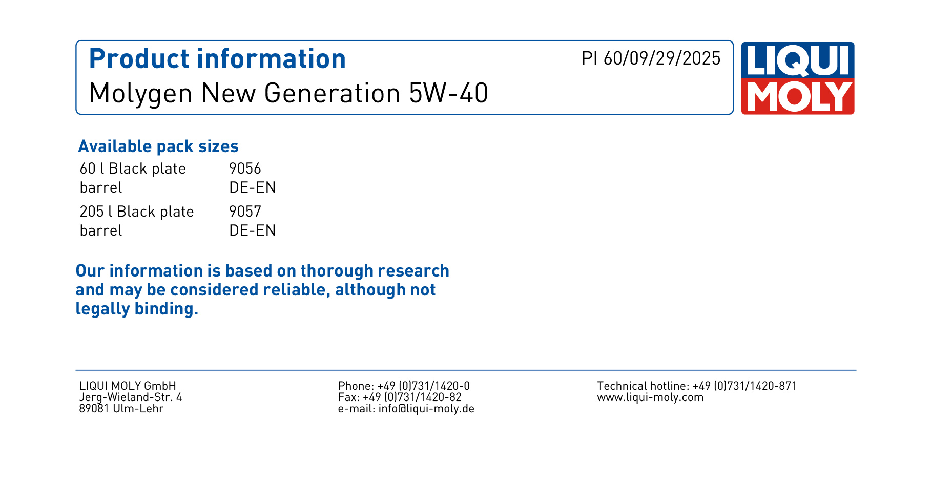 LIQUI MOLY Molygen New Generation 5W-40 機油/潤滑油/偈油【綠魔系列】【原裝行貨】