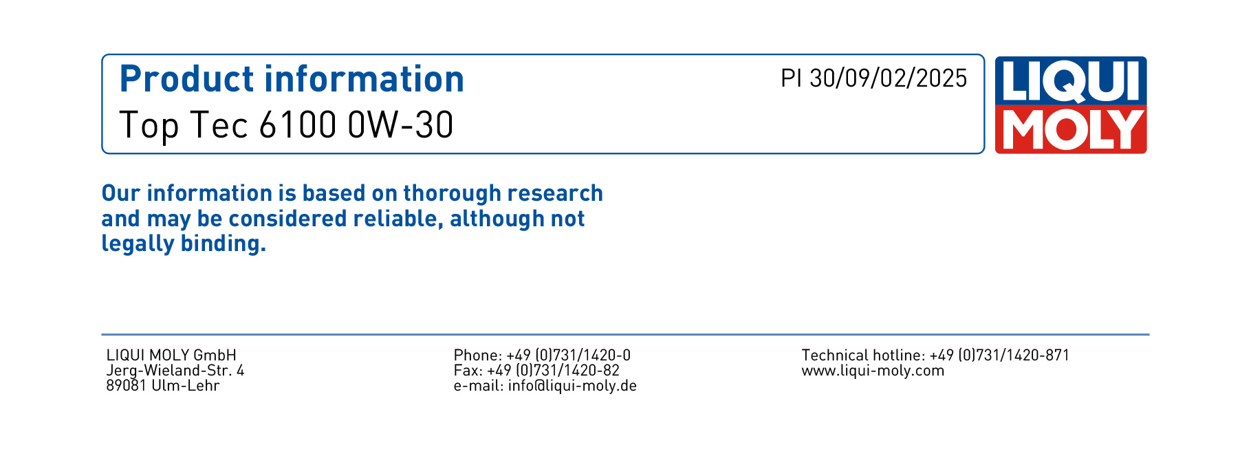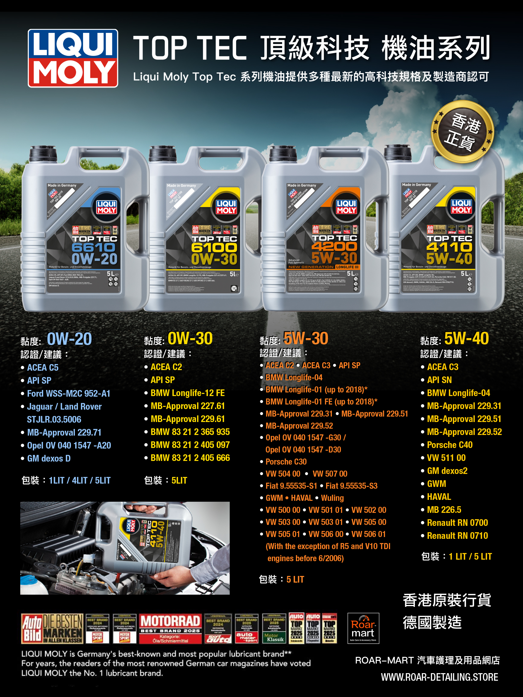 LIQUI MOLY Top Tec 6100 0W-30 (5L) 機油/潤滑油/偈油【原裝行貨】