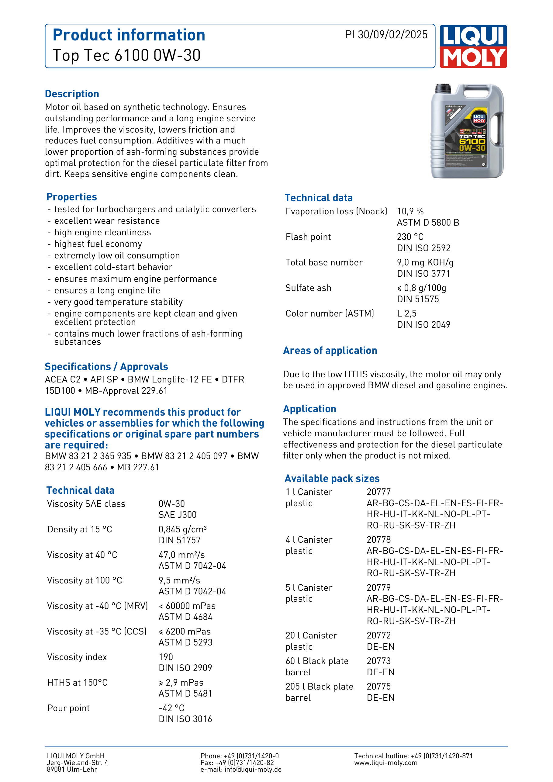 | 適用範圍:由於低HTHS粘度,該機油僅可用於經批准的BMW柴油和汽油引擎。 |